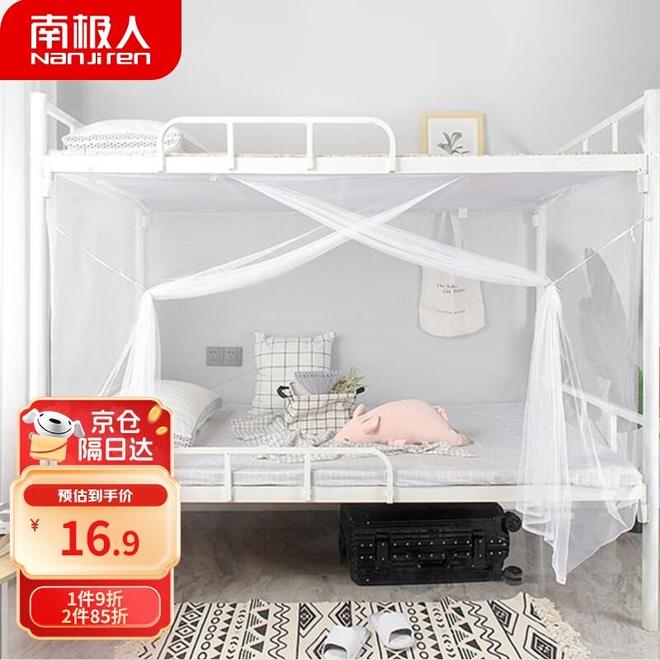 南极人(Nanjiren)学生蚊帐宿舍方顶蚊帐单开门0.9米寝室防蚊帐子【上下铺通用】